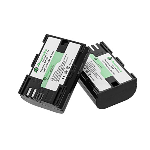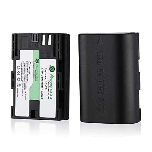 Powerextra - Confezione da 2 batterie di ricambio Canon LP-E6 / LP-E6N per Canon EOS 60D, EOS 70D, EOS 5D II, EOS 5D III, EOS 5DS, EOS 5DS R, EOS 6D, EOS 7D e fotocamere BG-E14, BG-E13, BG-E11, BG-E9, BG-E7, E6 BG-Grips