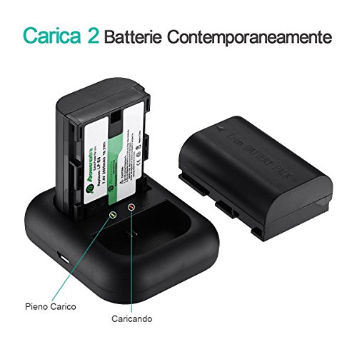 Powerextra Caricabatteria + 2x Batteria LP-E6 | LP-E6N, Batterie 2600mAh e Doppio Caricatore Rapido per Canon EOS 5D Mark II | 5D Mark III | 6D | 60D | 60Da | 7D | 70D | 80D | 7D Mark II | XC10 ecc.