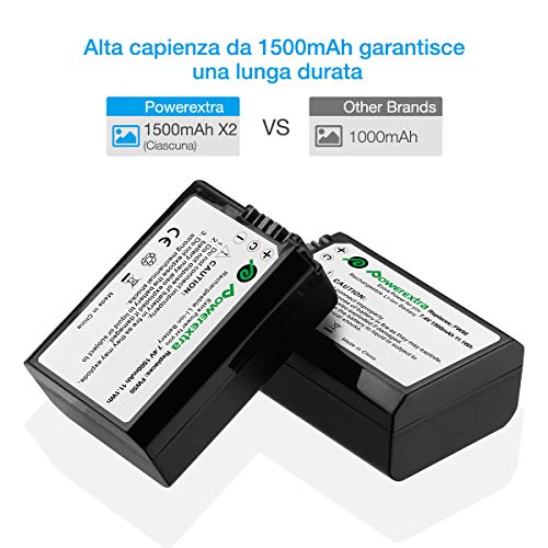 Powerextra Caricatore con 2 x Batteria di Ricambio 1500mAh Doppio Caricatore e Batteria Caricatore LCD Doppio per Alpha a6500 a6300 a6000 a7s a7 a7s II a7s a51000 a5000 a7r a7 II
