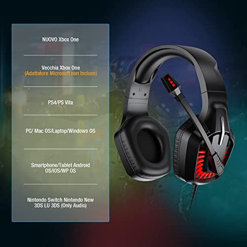 【Plug e Play & Compatibilità PS4, Xbox One, PC】Cuffie per il vostro gioco preferito al pc, ma è compatibile con altre console di gioco come la PS4/PS5/Xbox One S/Xbox One/Switch/PC/Smartphone/Tablet/Laptop ecc. Funziona perfettamente con i dispositivi jack standard da 3,5 mm,xbox 360 non è compatibile.