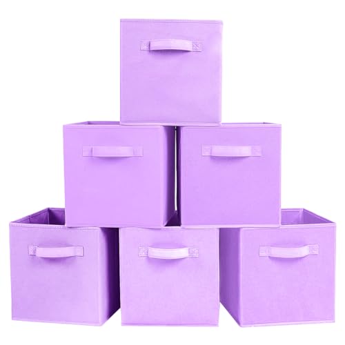 Powerking Scatola portaoggetti pieghevole, 6 pezzi, in tessuto a forma di cubo, viola chiaro