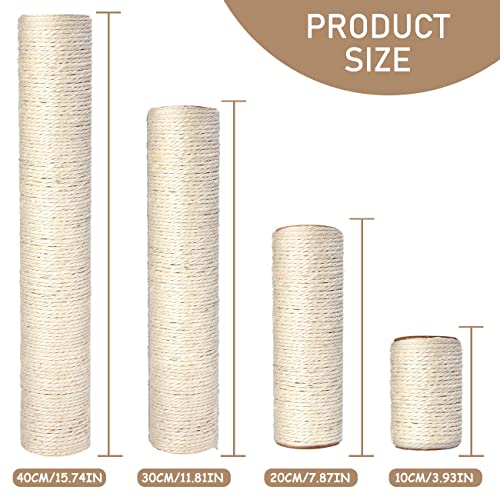 Powerking Tiragraffi di ricambio in sisal naturale, 4 pezzi M8 Cat Scratch Post Refill Pole Parts per ricondizionamento, bianco, include viti, 40 cm + 30 cm + 20 cm + 9 cm + 9 cm