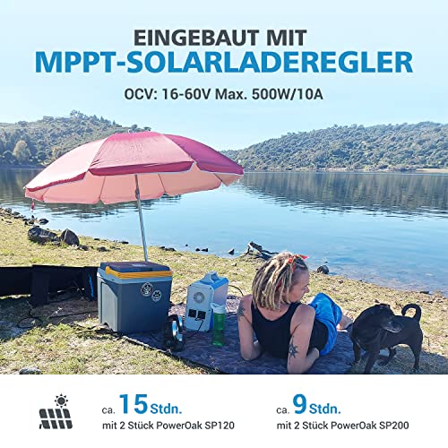 PowerOak EB180 1800Wh Generatore Solare e 2 Pezzi Pannelli Solari PV120 da 120W, Solare Generatore di Corrente con 1000W Inverter Uscita AC/DC/USB Alimentatore per Casa, all'Aperto e Campeggio