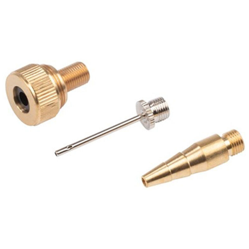 KIT 3 UGELLI MULTIUSO 'POWAIR0101' Il kit è composto da: - n. 2 Ugelli in ottone - n. 1 Ugello con ago in acciaio Kit adatto per gonfiare palloni, pneumatici, piscine e materassini. Caratteristiche Numero pezzi: 3