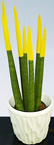 POWERS TO FLOWERS - SANSEVERIA CILINDRICA COLOR LIFE GIALLO IN VASO CERAMICA CON SPATOLATURA IN RILIEVO, pianta vera