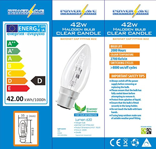 PowerSave, 10 lampadine alogene dimmerabili a risparmio energetico, B22 42.00W 240.00V