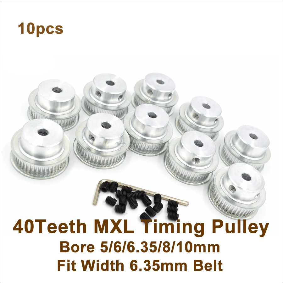 POWGE 10pcs 40 Teeth MXL Timing Pulley Bore 5/6/6.35/8/10mm Fit W=6.35mm MXL Belt 3D Printer,Ultimaker(40T 40Teeth MXL Pulley)
