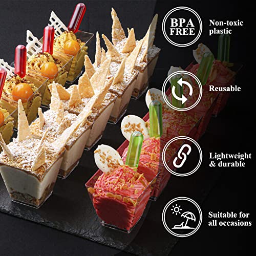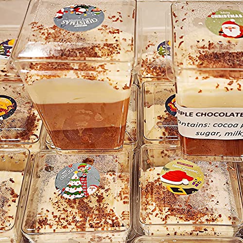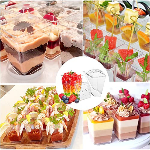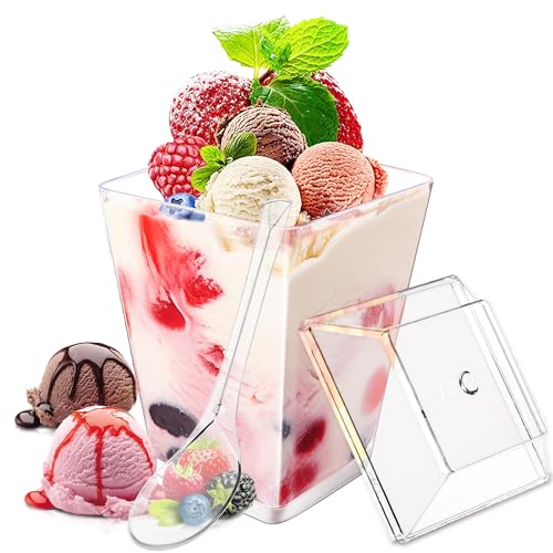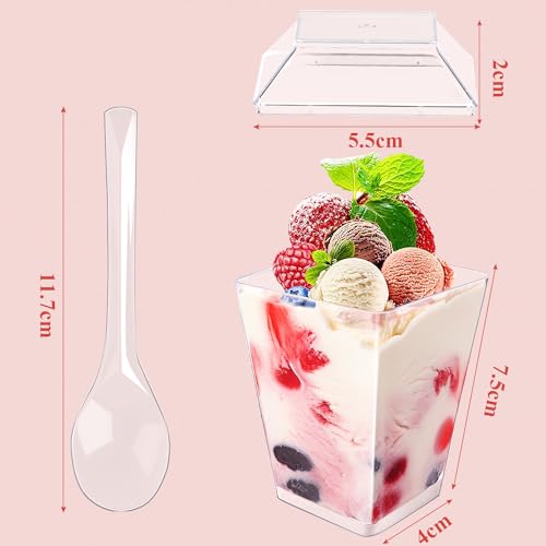 Powmag Mini Coppette da Dessert, 30 Pezzi Coppette da Dessert con Coperchi e Cucchiai, Coppette da Dessert Quadrate da 150ml Coppette da Dessert in Plastica Riutilizzabili per Dessert Pudding Mousse