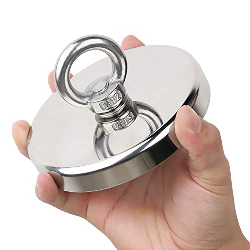 Powmag - Magneti al neodimio N52 super forti, 590 kg, forza adesiva, ideali per la pesca magnetica, diametro 120 mm, magnete di ricerca con occhiello al neodimio