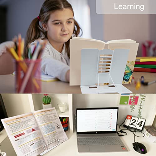 Powmag Multifunzione Leggio Libri, 6 Altezze Regolabile Lettura Porta Libri, Regolabile Metallo Book Stand, Supporti per Libri in Metallo Antiscivolo per Ricette, iPad, Musicale, Tablet (bianco)