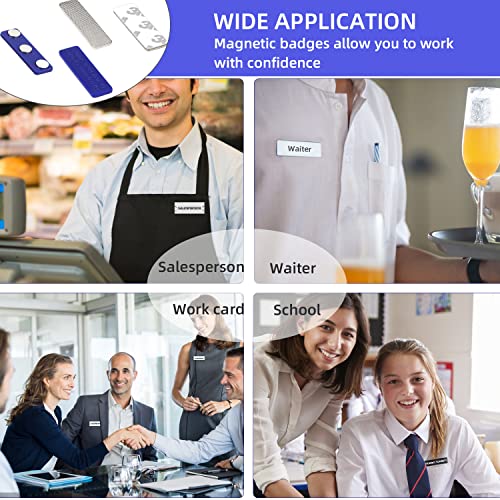 【Facile da usare】quando si utilizza, basta inserire la piastra posteriore in plastica blu scuro con i magneti nella giacca o sul risvolto e attaccare la targhetta con il nome sulla piastra posteriore adesiva in acciaio inossidabile. Metti entrambi nella stessa posizione sui vestiti allo stesso tempo, si attireranno a vicenda.