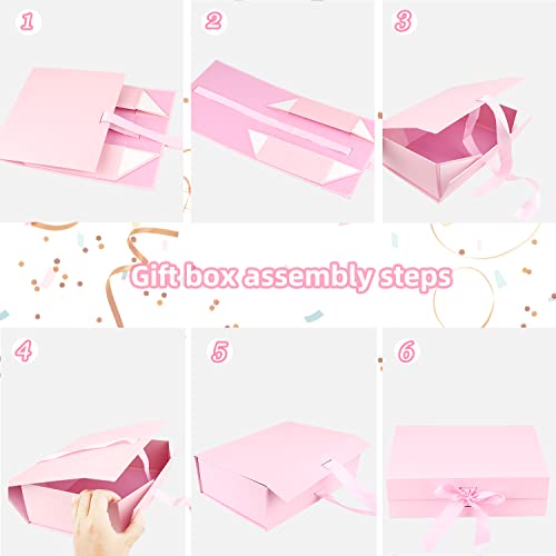 Powmag Scatola Confezione Regalo, Scatola Regalo con Coperchio, Scatola Regalo Premium Gift Box con Fiocco, Scatole Regalo Grandi 26.5cm x 19cm x 8cm, Rosa Confezione Regalo Rettangolare