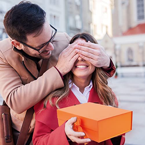 Powmag Scatola Confezione Regalo, Scatola Regalo con Coperchio, Scatola Regalo Premium Gift Box con Fiocco, Scatole Regalo Grandi 26.5cm x 19cm x 8cm, Arancione Confezione Regalo Rettangolare