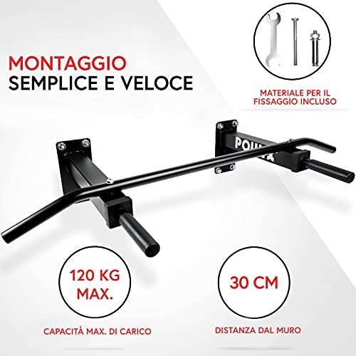 CARATTERISTICHE: Pull-up bar facile da montare e tasselli per fissaggio inclusi;