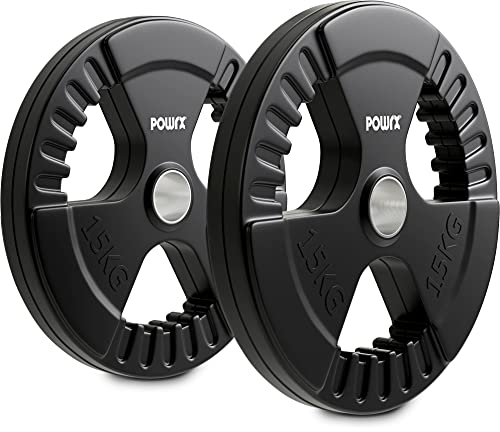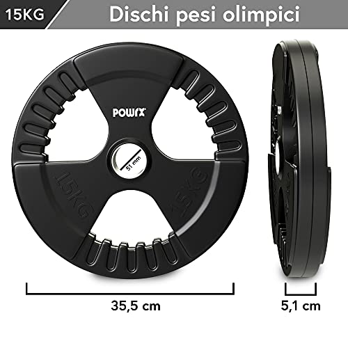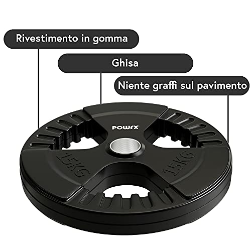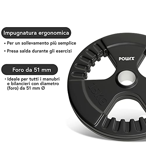 POWRX Dischi pesi olimpici 30 kg set (2 x 15 kg) - Ideali per manubri e bilancieri olimpionici con braccio da 51 mm (Nero)