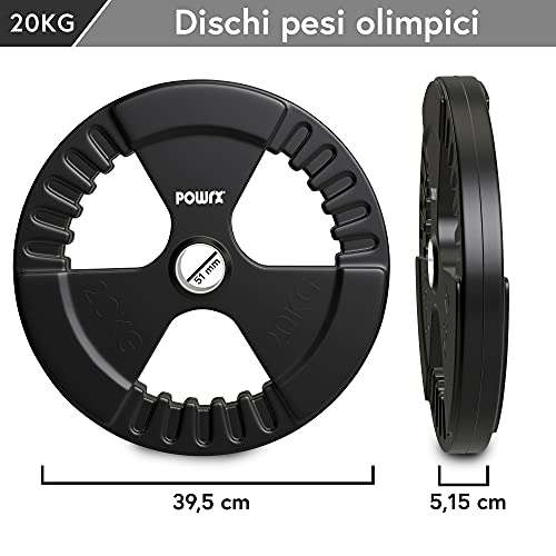 POWRX Dischi pesi olimpici 40 kg set (2 x 20 kg) - Ideali per manubri e bilancieri olimpionici con braccio da 51 mm (Nero)