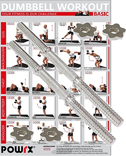 POWRX Manubri cromati con Chiusure a Stella - Ideali per Dischi Pesi con Foro Ø 30 mm + PDF Workout (Argento)