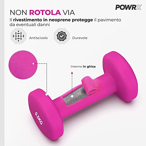 POWRX Manubri pesi neoprene 1 kg set (2 x 0,5 kg) + PDF workout (Viola)