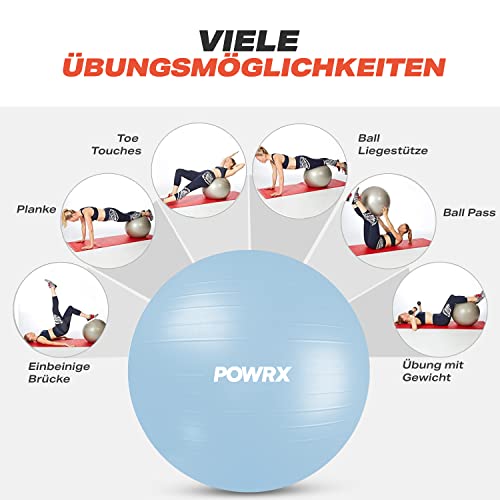 POWRX Palla Fitness 55-95 cm per Ginnastica, Yoga & Pilates - PDF workout & Pompa per il gonfiaggio - Antiscoppio