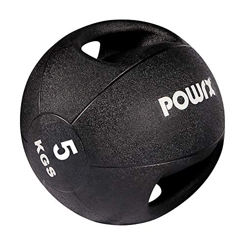 POWRX - Palla medica con maniglie 7 kg + PDF Workout (Nero)