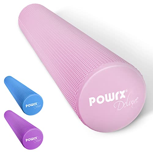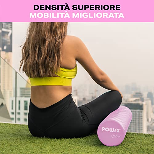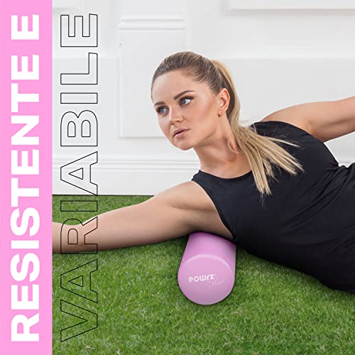 POWRX Rullo pilates in gomma eva per Massaggio muscolare, Trigger Point & Fisioterapia - Foam roller ottimo per Pilates, Yoga e Ginnastica + PDF Workout (90x15 cm, Pink)