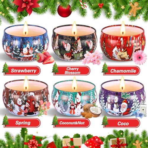 POWZOO Candele Profumate Natalizie,6,9,12 Set Regalo di Candele Profumate,Naturale Candele di Soia,Decora il Natale Compleanno La Festa Nuziale,Regalo per Mamma Candele Set. (6 pezzi)