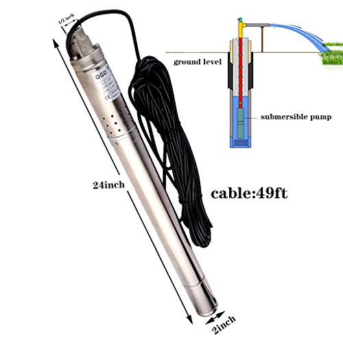 ★ Questa pompa per pozzi sommergibile a vite con un tubo esterno o una filettatura (superiore), facile da trasportare per l'uso domestico, ideale per il villaggio, la casa, la fattoria, l'approvvigionamento idrico del camper, il campo ecc. Attenzione: è vietato l'uso senza acqua. La dimensione minima dell'uscita del pozzo deve essere superiore a 55 mm è migliore.