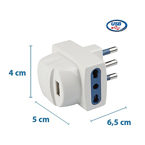 Poly Pool PP0469 Adattatore Compatto Con Alimentatore USB Spina Grande 16 A 2 Prese Bivalenti, Bianco