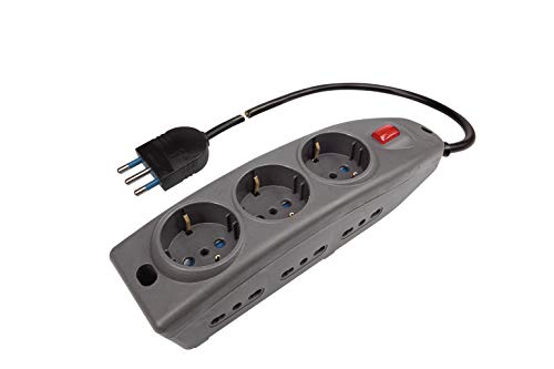 Poly Pool PP0545.2 Presa Multipla Compact Spina Grande 16 A Con 9 Prese, 1.5 m Cavo e Interruttore, Nero