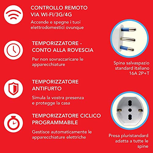 Urideale per gestire per esempio frigoriferi, aria condizionata, luci, forno a microonde, router wifi, macchinetta del caffè, scaldabagno ecc