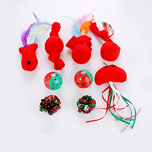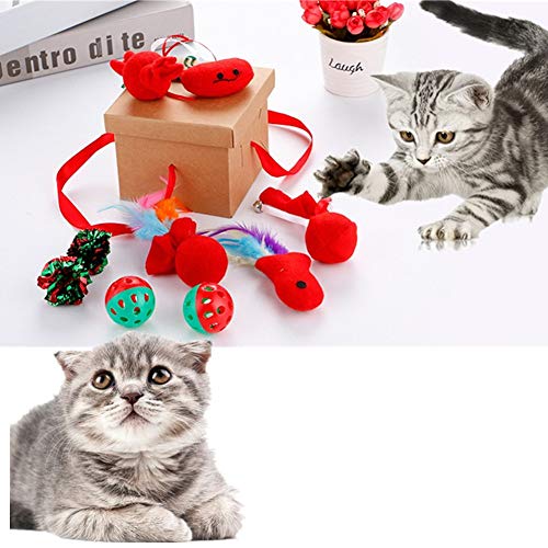 Ppactvo Giochi Gatti Giochi per Gatti in Casa Gioco Interattivo del Mouse del Giocattolo di Natale per Pulire I Denti del Gattino del Gatto Che Gioca Masticare set-9pcs