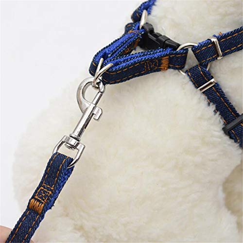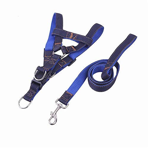 Ppactvo Guinzaglio per Cani Guinzaglio Cane Imbracatura E Guinzaglio di Sicurezza Regolabili Set No Pull Easy Walking Guinzaglio in Denim Resistente per Addestramento di Cani di Taglia Piccola Blue,L