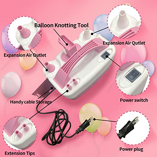 PPXIA Pompa elettrica per palloncini, pompa elettrica per palloncini con strisce decorative per palloncini, pompa portatile con doppio ugello