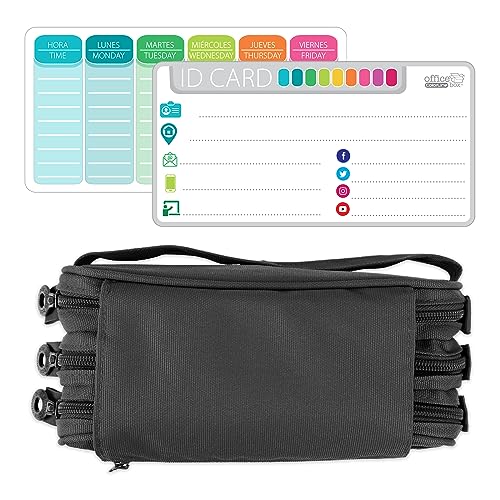 PracticDomus ColePack Set di Astuccio Scolastico Triplo con 3 Cerniere e Materiale Scolastico delle Migliori Marche Incluso (Noir)