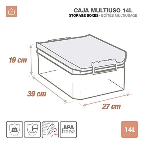 Scatola in polipropilene di alta qualità, molto resistente e durevole. Maniglie in ABS integrate nel coperchio