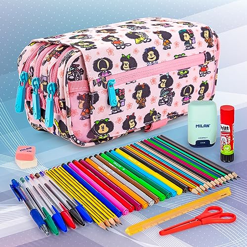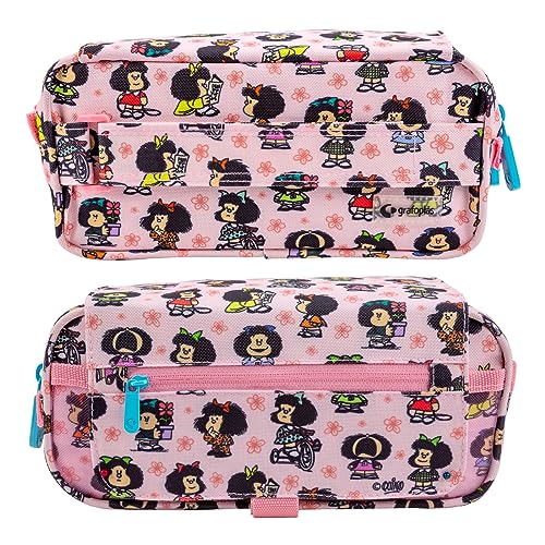 PracticOffice Astuccio Triplo Design per la Scuola con Ampie Tasche Interne e Cerniera Individuale per la Scuola e il Viaggio (Mafalda2)