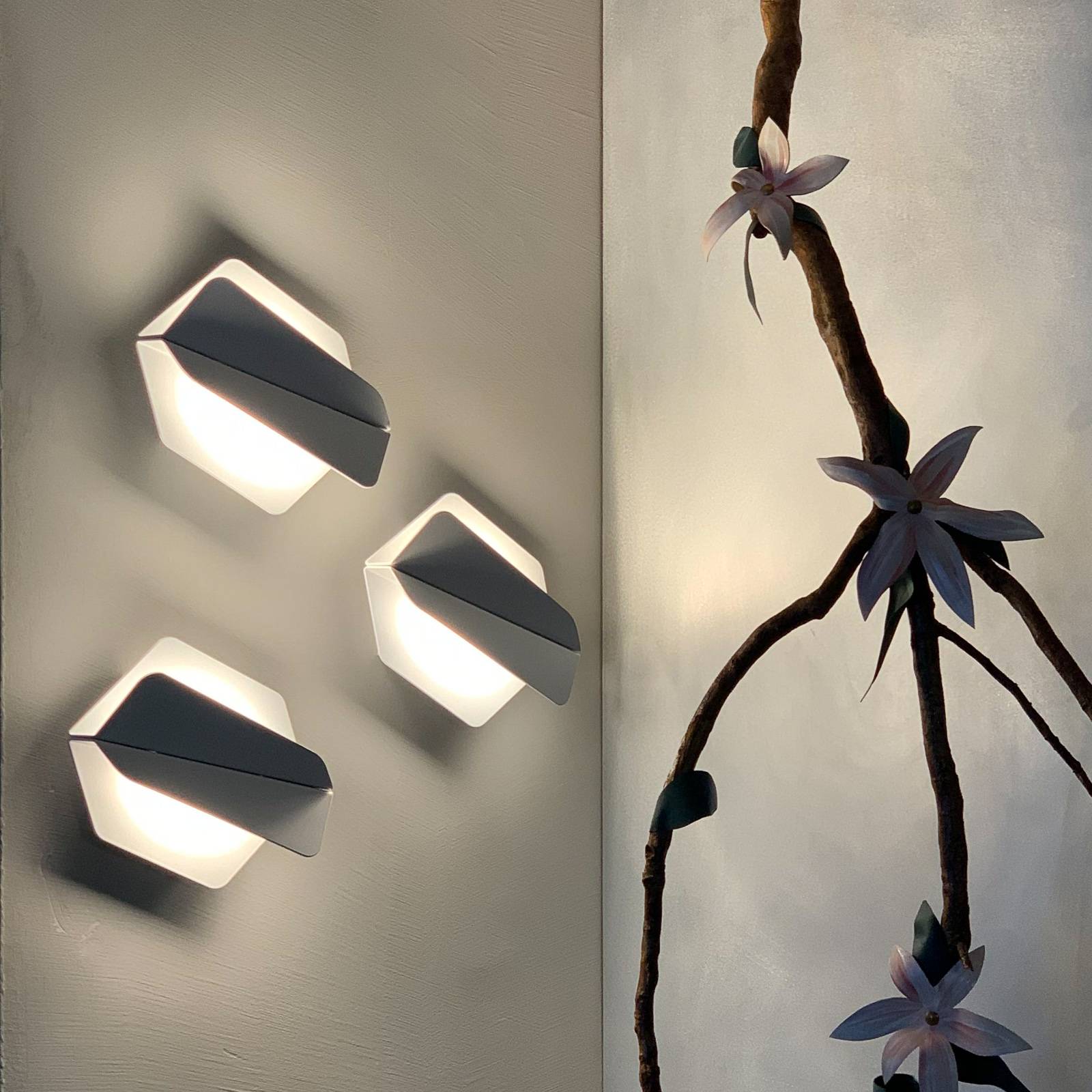 Dolomite W1 lampada da parete indiretta a LED in set di 3 L'impressionante lampada da parete Dolomite W1 LED colpisce per la sua forma geometrica esagonale. Questo è composto da una sezione superiore e una inferiore;