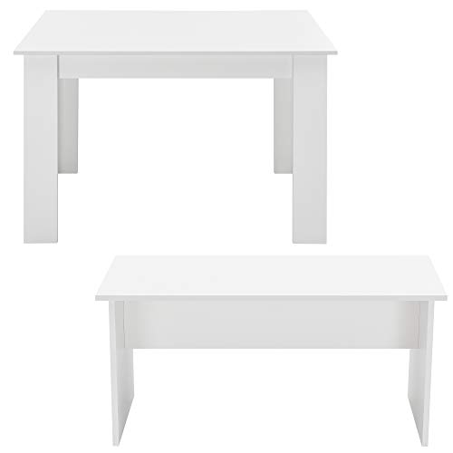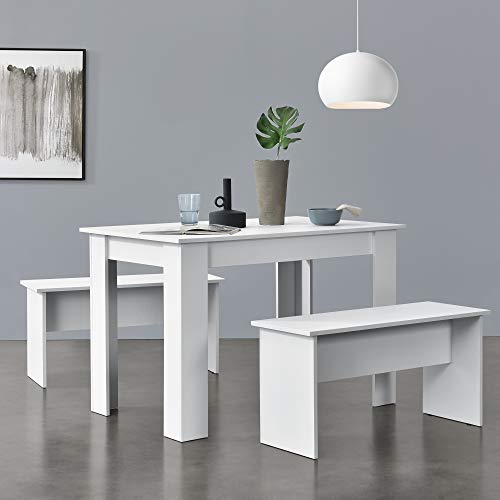 En.casa - Set per Sala da Pranzo Composto di Tavolo e 2 Panche Mobili in Design Minimal Set da Pranzo Fino a 4 Posti - Bianco
