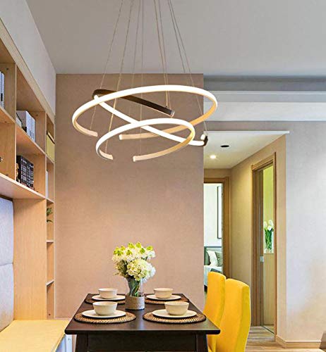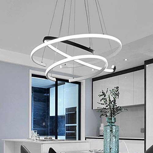 - Design: moderno lampadario a LED, design ad anello, colore classico bianco e nero, personalità e moda. È molto adatto per sala da pranzo e soggiorno.