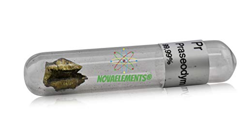 Praseodimio elemento 59 Pr, campione puro 1 grammo 99,9% in olio minerale in fiala di vetro con etichetta