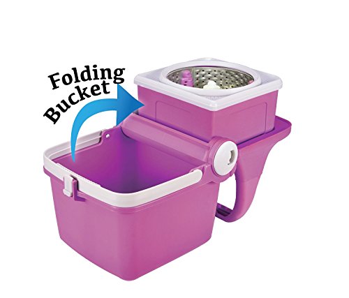 Spin Mop Mama pratico secchio pieghevole, mocio in microfibra, in acciaio INOX e palo, 360 spinning mop System (viola)