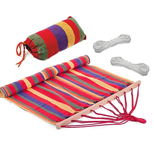 Pratiko Life Amaca Giardino Campeggio Tessuto con Asta in Legno e Sacca Portatile per Esterno 200 x 80 cm Rosso