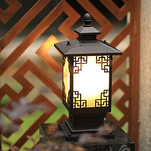 Prato Lampione Lampioncino E27 Esterno Lampione Lanterna Pilastro Luce Quadrato Porta Colonna Faro Impermeabile IP23 Giardino Cancello Parco Paesaggio Lampione stradale (Grande)