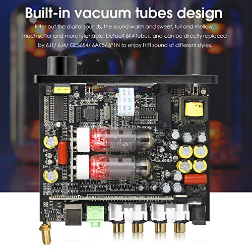 Tubi sottovuoto integrati per filtrare i suoni digitali, il suono caldo e dolce, pieno e mellow, più morbido e più leggibile. Tubi Default 6K4 e possono essere sostituiti direttamente da 6J1/6J4/GE5654/6AK5/6*1N per godere di un suono HiFi di diversi stili.