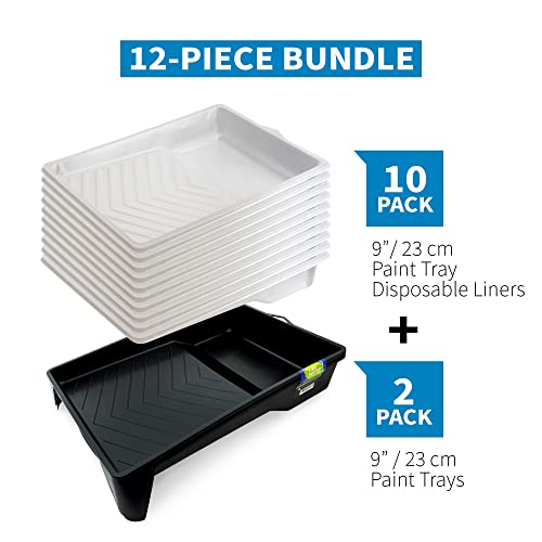 Precision Defined Vaschetta per Rullo Pittura da 23 cm, Include 2 Vaschette Plastica per Vernice e 10 Vassoi da Rullo per Pittura Usa e Getta, Ricambi per Vaschette PD