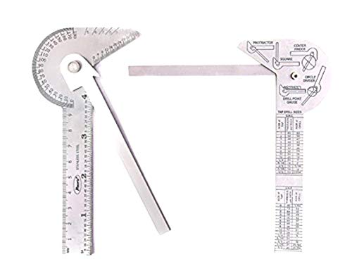 Serve 5 diverse funzioni di un Center Finder, conici, un 4 - 3/10,2 cm righello con scala 1/162,6 cm, 9.8 mm righello con scala 1 mm, un cerchio Drill Point Gauge per controllare il 59 gradi Trapano divisore e punti.