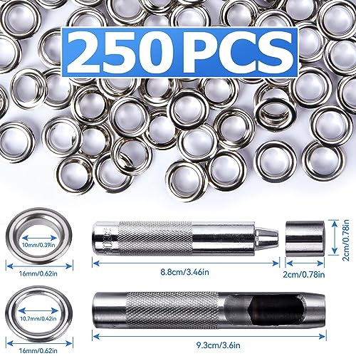 Preciva 250PCS 10mm set di strumenti di punzonatura,Kit di Attrezzi per Occhielli in Acciaio Inossidabile da 10 mm, per Tende da Sole, Tende, Abbigliamento, Artigianato Fai da Te