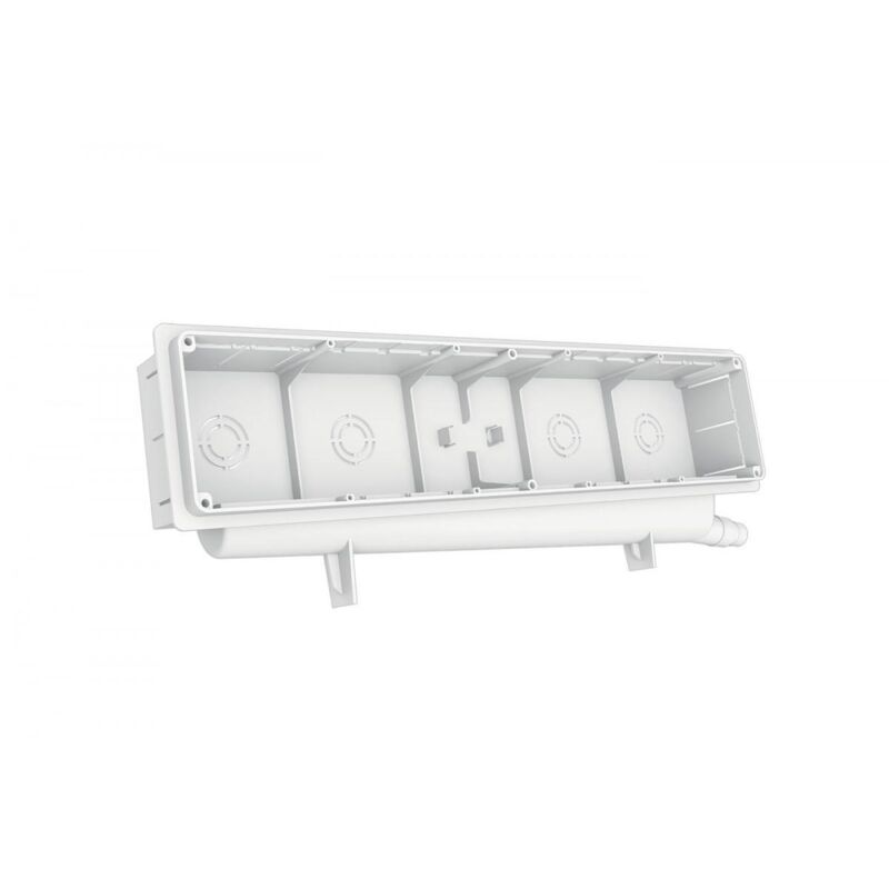Predisposizione Compact classic con coperchio ad incastro Tecnosystemi 11100098 La predisposizione è realizzata in polistirolo antiurto. La particolare conformazione del convogliatore per l'acqua di condensa, fissato posteriormente, ne impedisce il ristagno e la formazione di cattivi odori. Questo è dotato di una griglia in modo che malte, calcinacci o residui di tinteggiatura non ostruiscano il passaggio dell'acqua. Per facilitare la messa in opera, la predisposizione è provvista di piedini di appoggio. Caratteristiche tecniche: Convogliatore ad imbuto posteriore reversibile dx/sx con doppio attacco laterale Ø 16 - Ø 20 Griglia di protezione Coperchio ad incastro o con viti Contenuto confezione: 1 scatola predisposizione con bolla incorporata 1 coperchio ad incastro Abbinamenti con tubi scarico condensa a catalogo: Tubo 18/20 Art.11126346 (collegamento diretto) Tubo 18/20 Art.11126320 (collegamento diretto) Tubo rigido TCR-21 (utilizzando il racc. MP-TCR-21)