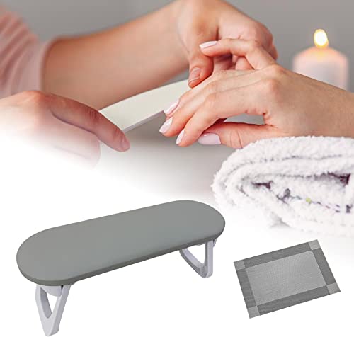 Predolo Poggiamano per strumento per manicure per unghie Cuscino per mani per manicure Poggiamano antiscivolo Supporto per mani pieghevole per unghie per uso, angolo tondo grigio