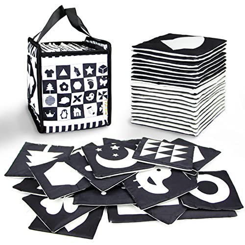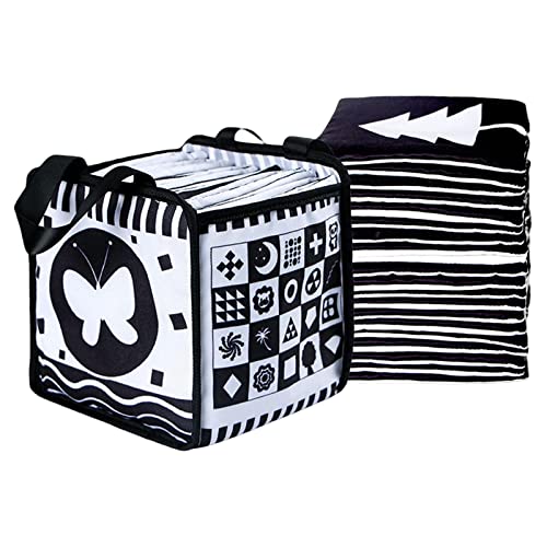 Predolo Schede Flash Morbide Giocattoli Educativi Precoci Lavabili con Borsa di Stoccaggio Libro di Stoffa per Bambini da Viaggio Giocattolo All'aperto per Ba, Nero Bianco